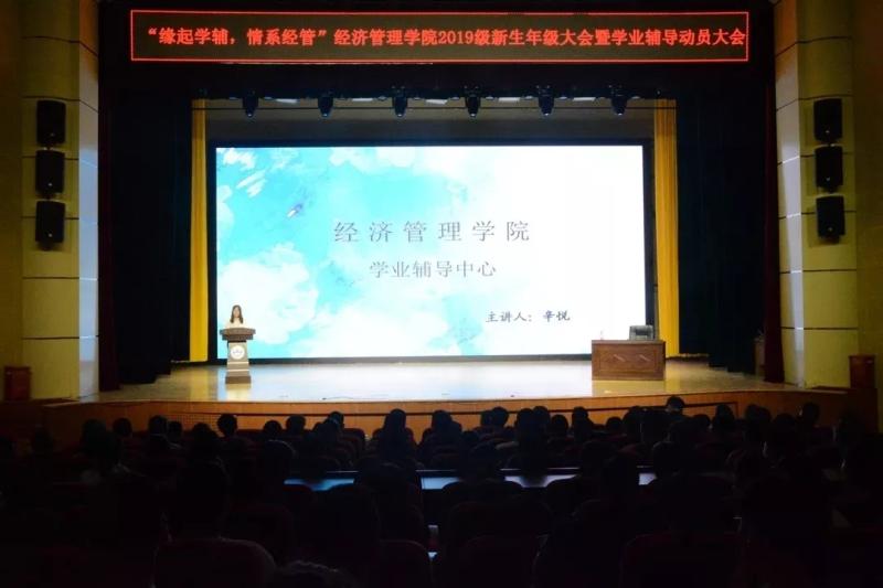 为了引导大学生树立正确的学习观,认清自身责任和使命,促进学生成长成才,9月2日下午13:00经济管理学院于鲲鹏学生文化活动中心举办了以“缘起学辅,情系经管”为主题的2019级新生年级大会暨学业辅导动员大会。2019级辅导员冷雪冰老师担任此次大会的主持人,学业辅导中心授课成员及2019级学生参加了此次大会。