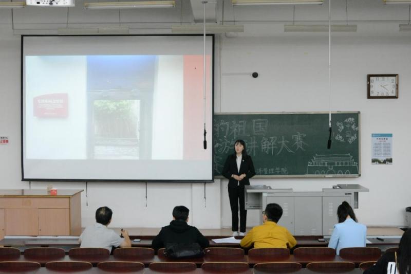 2019年9月25日经济管理学院于下午1:30在实验楼十阶教室举办了“我和我的祖国”校园红色导游讲解大赛初赛,由旅游管理专业的孙宝鼎老师,王金超老师,李蕾老师,张玉鸿老师担任评委。