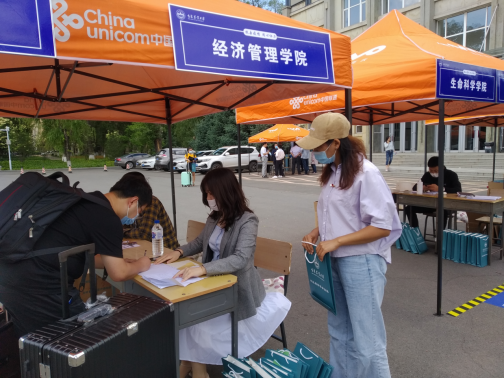 经济管理学院党委副书记武杨,团委书记薛长春,学生工作办公室李智超老师、冷雪冰老师、苏亮老师、王岩老师到返校报道现场迎接返校研究生,并督查指导学生们的返校报到工作。老师们严格按照规范流程,做好服务与检测工作,确保学生顺利健康返校。